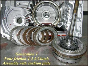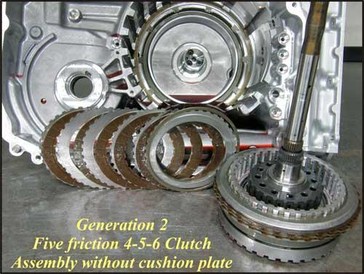 One example of an architectural change is with the 4-5-6 clutch. The wave plate was removed and an additional friction was added for increased torque capacity as seen below.