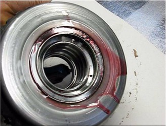 | One cause may be due to a crack developed in the 1-2-3-4 / 3-5-Reverse Clutch Drum. Five or more years Chris Spick at Lawrence Transmissions sent in to us some pictures of this problem showing how difficult it is to see this crack. It takes place either in the weld or by the bearing seat where the drum sits against the pump. The size of the crack will obviously determine the severity of the condition but it will also determine how easy or hard it will be to find the crack. If the complaint is not temperature related the crack is typically severe enough to locate with a wet air check. But if the problem occurs when hot, the crack is usually hard to see. To verify and locate a crack with a drum that checks well cold, load the drum and place it into a plastic bag and run it through a clean machine to heat it up. Then perform a wet air check when the drum is hot. |