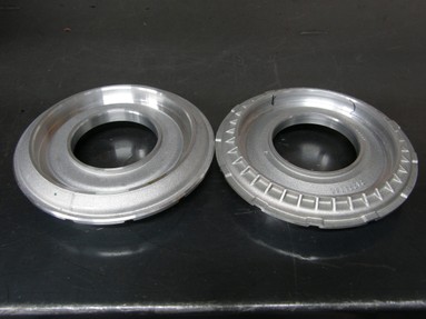 | When he took it apart, it took some looking but he did locate the crack which is seen in figures 5 and 6 between the black markers. But once he discovered the problem, his day didn’t get any easier. When he ordered a new piston (part # 24224146), it listed for $419.00 and wholesaled to the shop for $293.34. Some pretty tall dollars for one aluminum piston. To make matters worse, if the drum was cracked and it too needed to be replaced, this empty drum assembly lists for $269.63 and wholesales to the shop for $188.74 (part # 24237185). Talk about crack, snap, split or fracture, it will break your day and your bank. But there is an interesting alternative. A different style OE piston can be purchased which is smooth compared to the rib type (figures 7 and 8). The smoother piston is a fuller, sturdier type piston. It appears that aluminum material was removed with the ribbed type to make it lighter in weight. Apparently it also makes it weaker in strength. The good news is, this non-ribbed type piston (part # 24238700) sells for $25 to $30 dollars. It’s a great alternative in every aspect. |