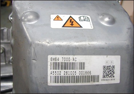 There is a high voltage warning tag on the transaxle top cover because the DC to AC Inverter as well as the Motor Control Modules are located underneath the cover.