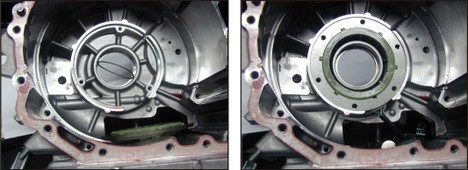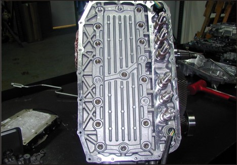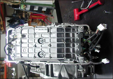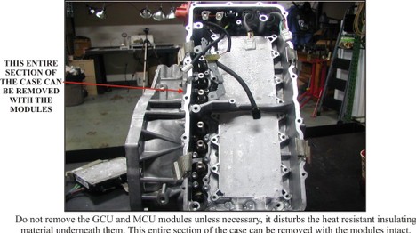 Once the module assembly is removed this cast aluminum plate will be visible. It covers the transaxle cooling chambers.