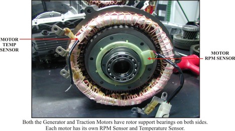 In the transmission case where the Generator Motor and the Traction Motor bearings are located, there are end play shims that must be installed in their proper locations. Measure each one during disassembly so the correct thickness shim goes in the correct location.