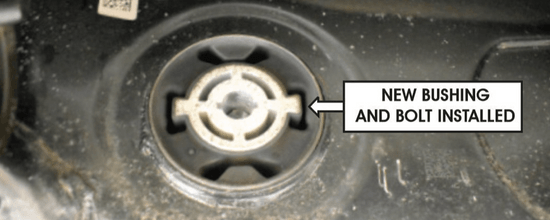 When the vehicle is brought into a Ford dealer for this recall, the dealer will replace the rear subframe bushing and install a new bolt as seen in the photo below. This recall also includes replacing the rear differential cover which may also have a defect on some models.
