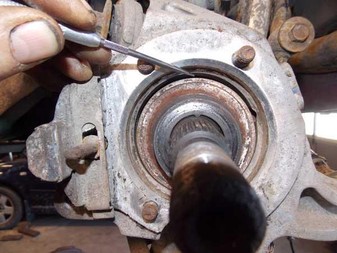 | The idea here is that if there was not a signal, the sensor or wiring will need to be inspected. If there is a signal, nothing is wrong with the sensor or wiring. This would point to a malfunction of the left rear exciter ring, preventing the sensor from producing a signal. And that is exactly what happened to Dale. He had an excellent reading so he pulled the axle to inspect the sensor ring and did not find one. With it being difficult to see what the sensor is reading to excite it, he changed the wheel bearing, as some vehicles have the pickup ring as an integral part of the bearing. Unfortunately, this did not resolve the problem. At this time he decided to pull the right rear axle and discovered that the sensor ring in this application is located on the end of the axle. Evidently, due to corrosion, the sensor ring had separated from the axle and became fixed to the housing. |