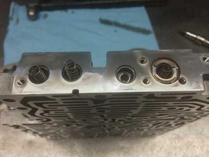 An interesting feature with the NAG 1 transmission is what’s called “Shift Groups.” There is a dedicated solenoid and a set of valves for each specific shift making up the contents of the group. There is the 1-2/4-5 shift group, a 2-3 shift group and a 3-4 shift group. With the 1-2 shift functioning well, the 1-2/4-5 shift group seemed to be an unlikely possibility. What John chose to do was to inspect the 3-4 shift group. What he discovered was a broken spring for the 3-4 Shift Pressure Valve as seen above. This prevented the proper release of the K1 clutch as the B1 clutch was being applied.