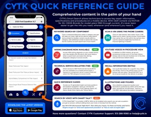 A survey shows that younger technicians embrace this technology immediately, while older ones are reluctant, but eventually come around to the new app. CYTK is available for a 30-day free trial after which the subscription rate is $60/month for independent shops and $179/month for dealerships.