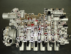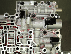 The solenoids that receive line pressure (A, B, C and F) will regulate that pressure to a lower pressure with which to regulate their respective control valves. These control valves sit forward of the solenoid inside the valve body and are also supplied with line pressure. |